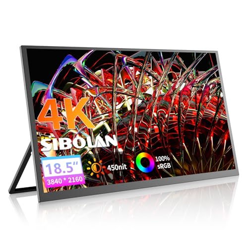 sibolan 18.5'' Portable Monitor 4K UHD 3840x2160 60Hz 1000:1 100% sRGB USB-C and HDMI Plug and Play IPS Screen for Laptop/Mac/Surface/PC/PS4/PS5/Xbox
