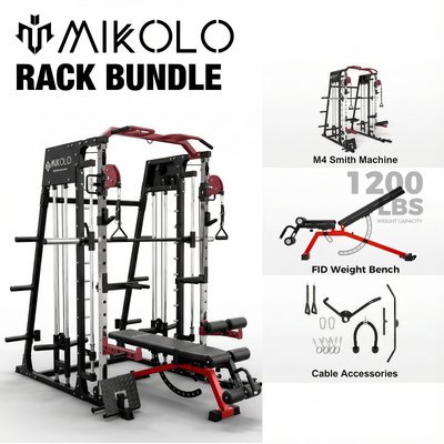 Mikolo - Smith Machine,2200 lbs Power Rack Cage with 800 lbs Weight Bench and Cable Crossover System, Weight Bar - Red