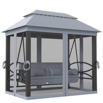 Outsunny - 3-Seat Patio Swing Chair Outdoor Gazebo Swing with Double Tier Canopy