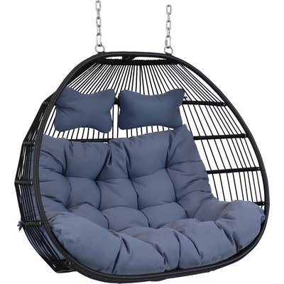 Sunnydaze - Black Resin Wicker Loveseat Hanging Egg Chair with Cushion - Gray