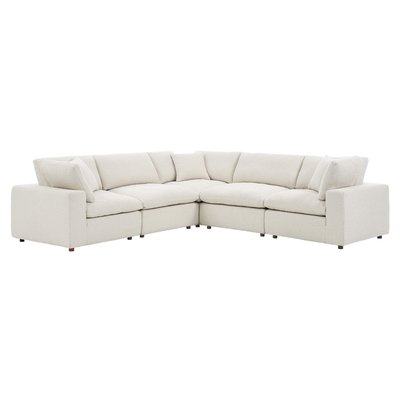 Commix 5-Piece Down Filled Overstuffed Boucle Sectional Sofa by Modway - White