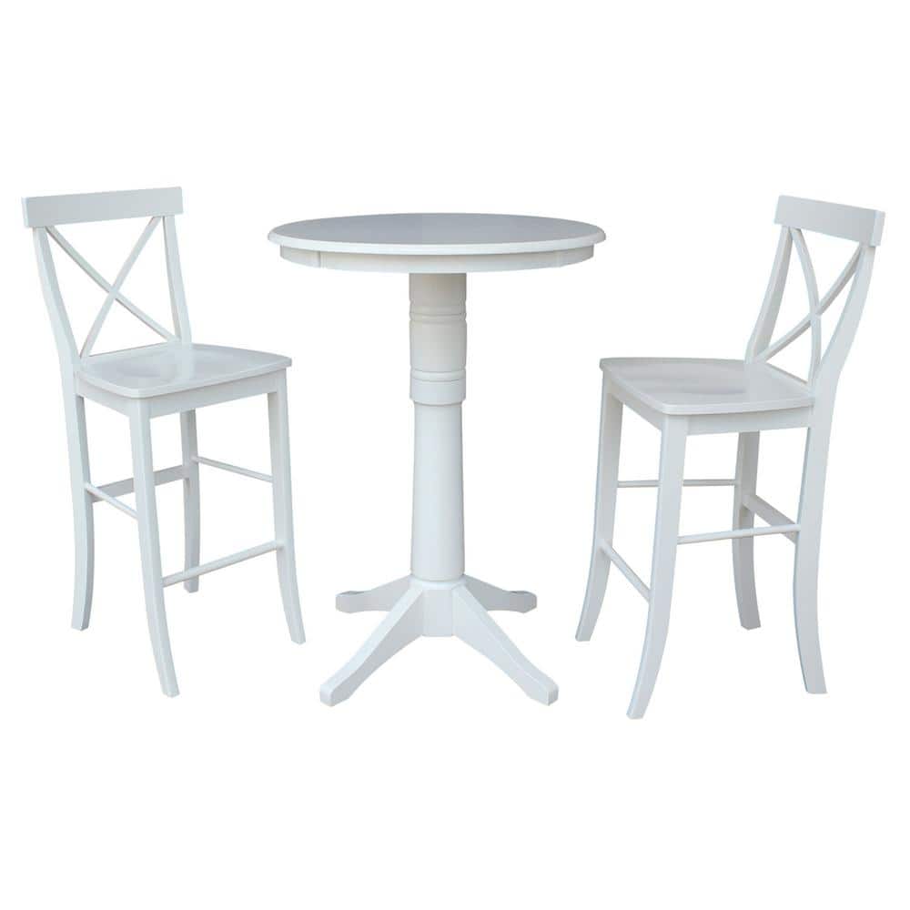 International Concepts 3-Piece Set Olivia White Solid Wood 30 in Round Pedestal Bar-height Table with 2 Alexa Armless Bar Stools