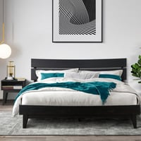 George Oliver Joacima 2-Pcs Bedroom Set – Solid Wood Platform Bed Frame & Matching Nightstand, Mid-Century Modern, 800 lbs Capacity, No Box Spring Needed