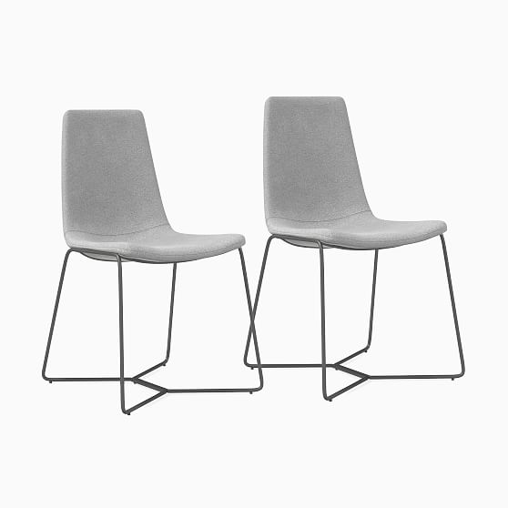 Slope Dining Chair, Set of 2, Distressed Velvet, Frost Gray, Charcoal