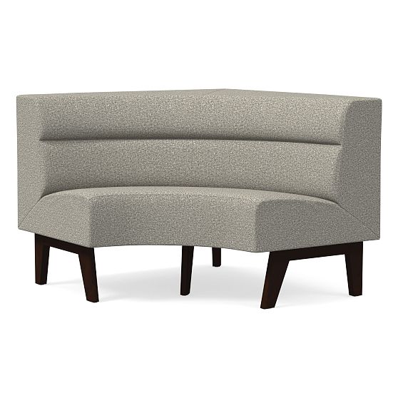 Novak Banquette, Horizontal Tufting, Curved, Twill, Gravel, Black