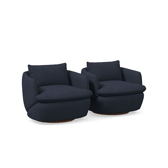 Crescent Set of 2 Grand Swivel Chair, Chenille Tweed, Midnight, CS