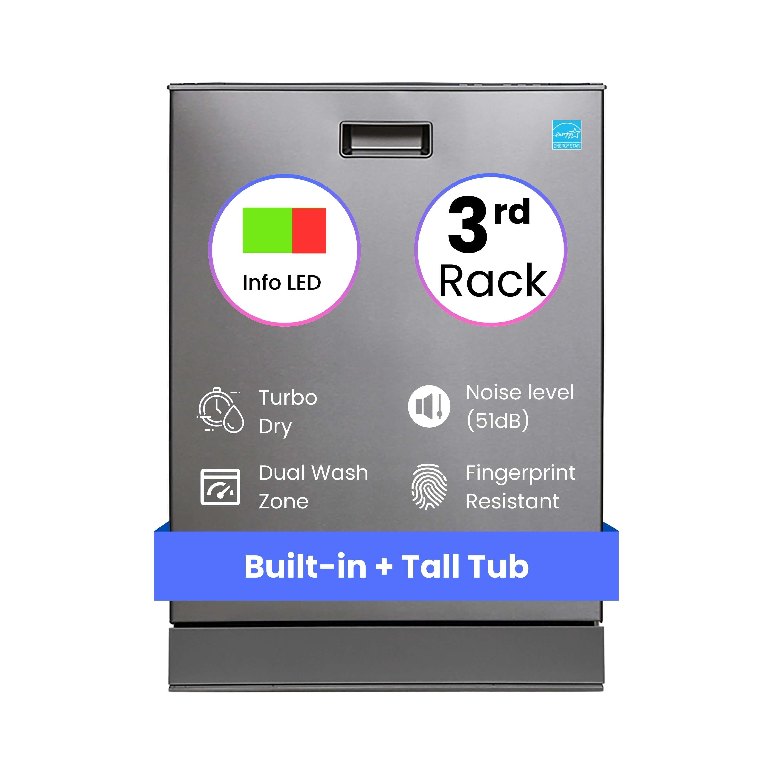 Equator - 24" Built-In Dishwasher Top Control 3rd Rack 15 place 3.4g Sanitize 51 dB Turbo Dry Energy Star 110V ADA - Silver